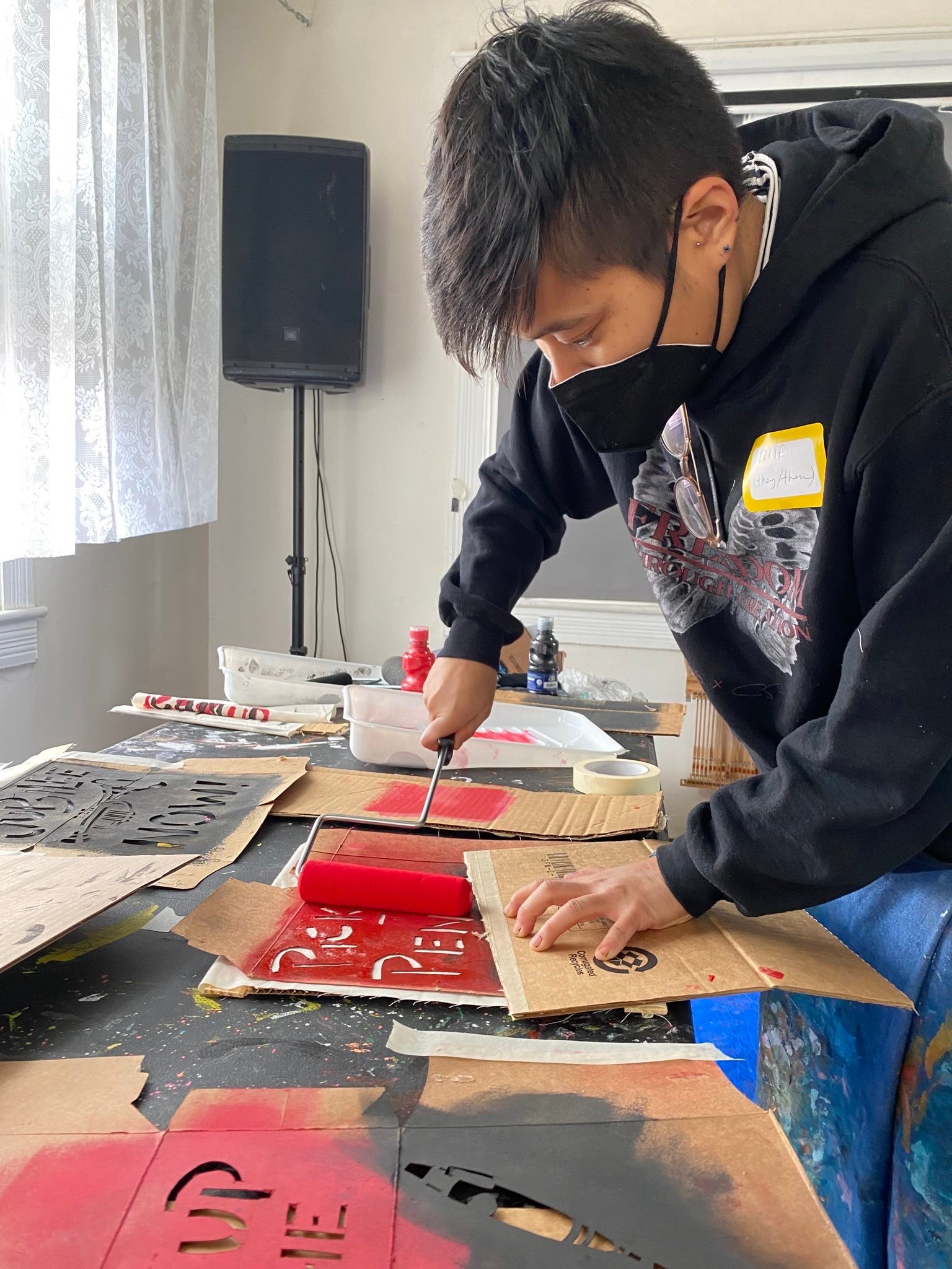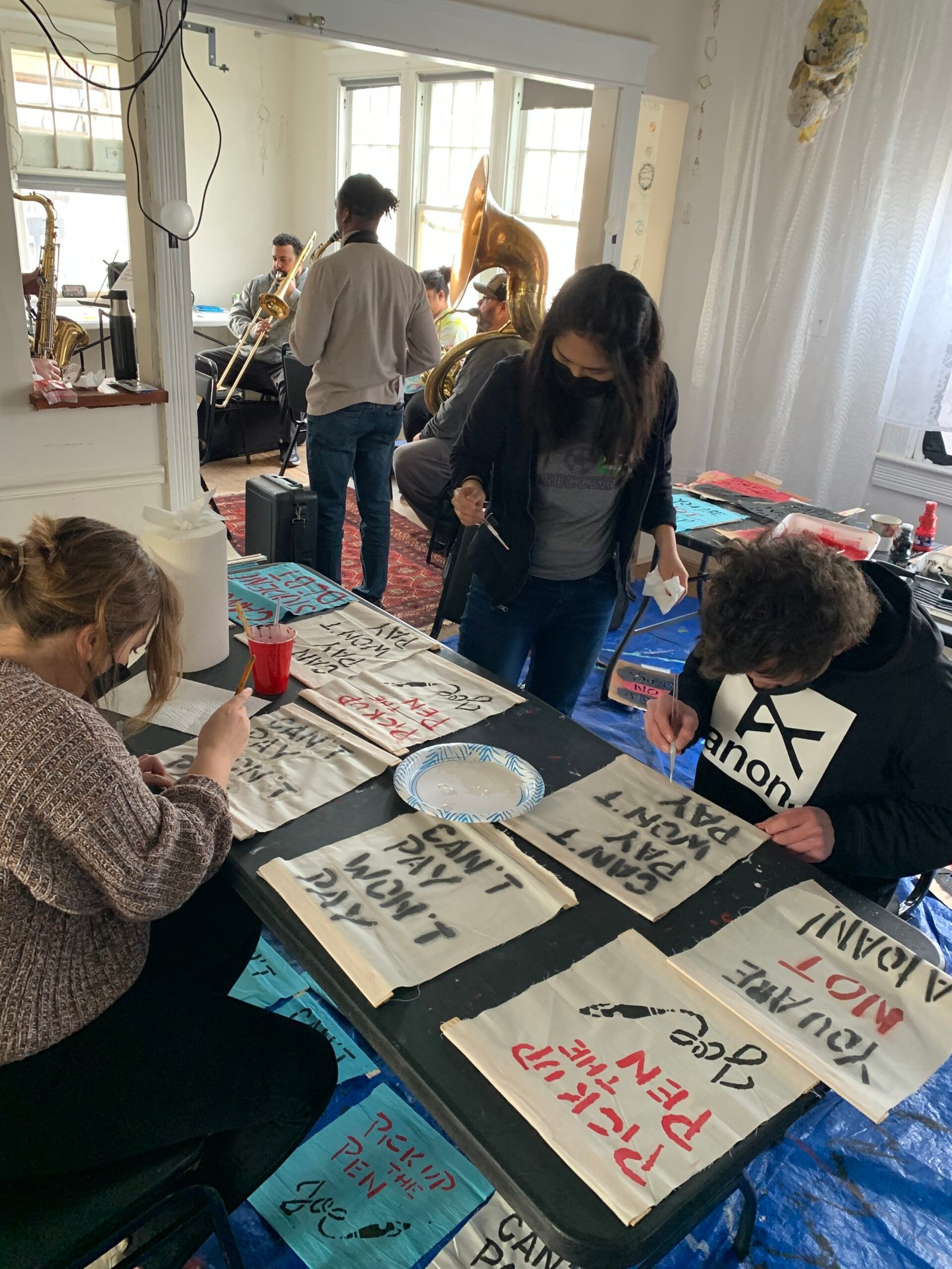Transverse facilitated an art build over three days at Rhizome DC, a DIY art space in the Takoma Park neighborhood, to create banners and signs for a public demonstration in front of the Department of Education with The Debt Collective.